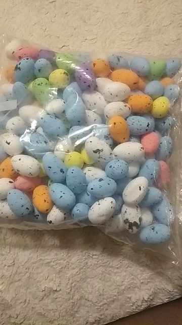 Очень милые пасхальные яйца. Они сделаны из пены и не открываются. Тот факт, что они сделаны из пены, был фактом, что я муссовал и сделал его немного более трудным для клея, потому что много клея расплавляет пену. Они достаточно маленькие, они намного меньше, чем когда-либо.