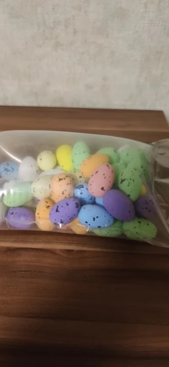 Заказ получили мега быстро!! Упаковка - отличная. Спасибо продавцу. Яйца немного меньше по размеру, чем ожидала, но в упаковке все разноцветные!!