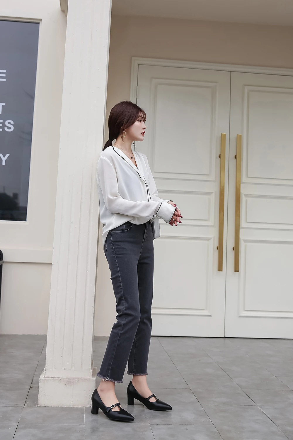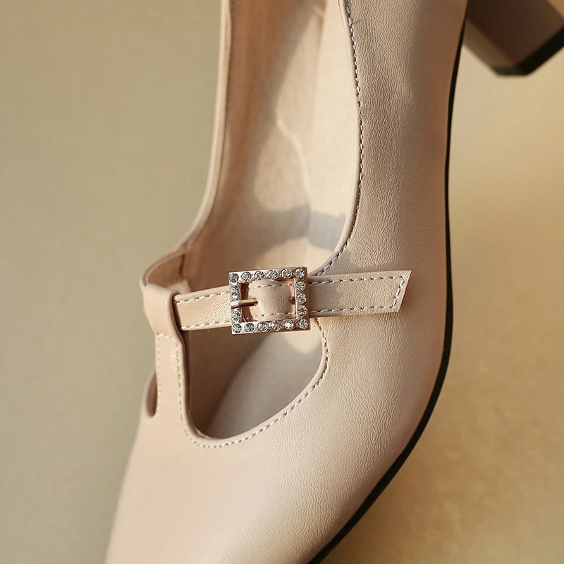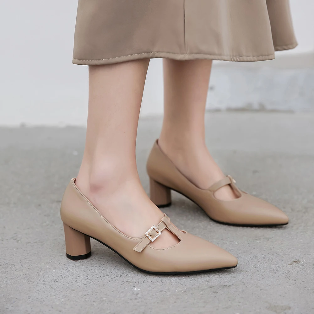 Новые женские Туфли Мэри Джейн на высоком каблуке с Т-образным ремешком и пряжкой повседневные демисезонные туфли-лодочки с острым носком размеры 31, 32, 33