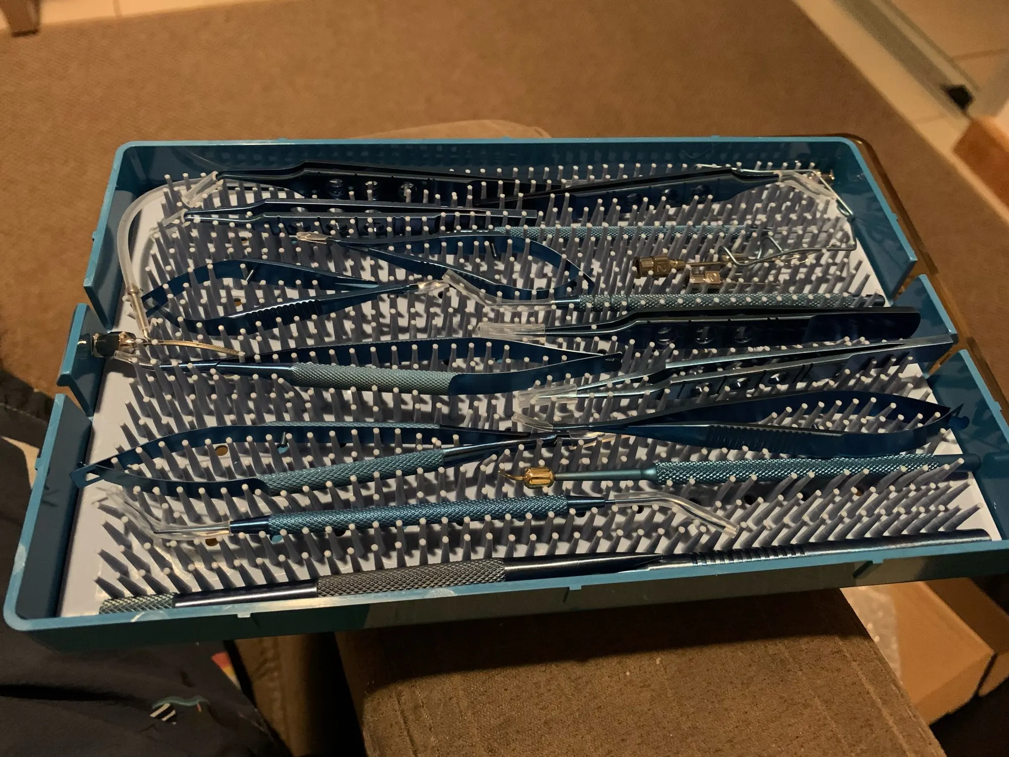 Описание: 1 ножницы для роговицы 2 катаракты ножницы память изогнутые наконечники 3 Микро-игольчатый держатель изогнутый Прямые Ножницы 4 Vannas Прямые изогнутые ножницы 5 ванн 6 спиральных щипцов роговицы прямые 7 пинцеты для капсулорексиса изогнутые, круглые наконечники 8 зажимных щипцов с коротким углом 9 зажимных щипцов прямые, платформа прямые 10 прямых зубчатых щипцов 11 держатель лезвия с пружиной 12 Настой наконечник катаракты с одной головкой конуса 13 Ирис Шпатель 14 наконечник в форме шара 15 IOL фиксационный крючок 16 IOL фиксация Крюк T тип Наконечник петли объектива 17 18 коаксиальный диафрагма I/A Cannula 0,3 мм 19 Posterior капсула полировщик короткий угловой 20 Ирис Шпатель Тип смыва 21 спектральная проволока для глаз