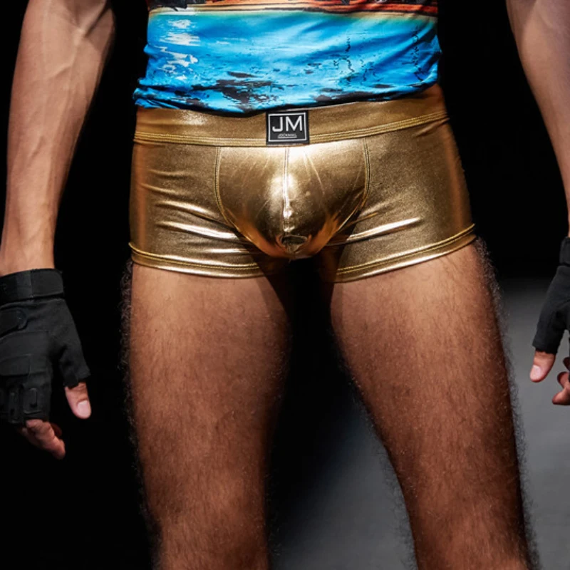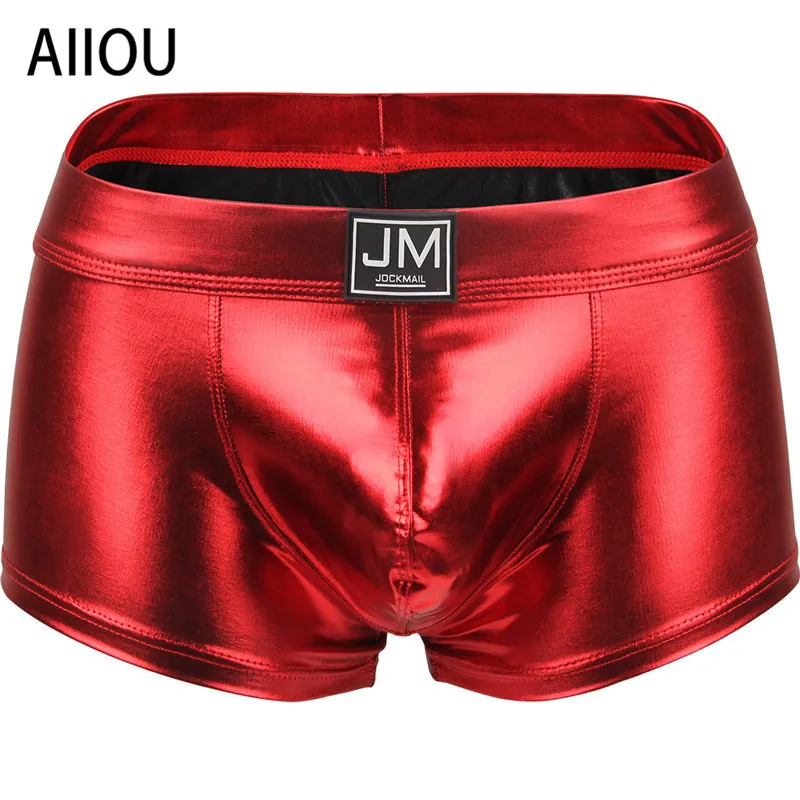Боксеры AIIOU мужские с низкой посадкой, шорты из искусственной кожи, пикантное нижнее белье, одежда для стриптиза, сценического шоу