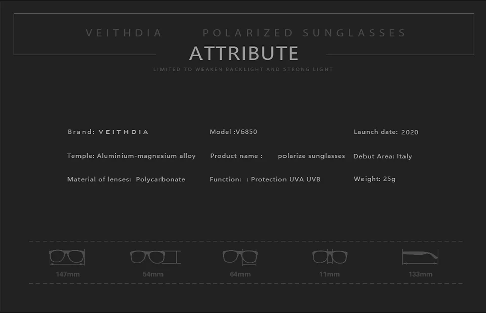 Мужские солнцезащитные очки VEITHDIA, алюминиевые модные фотохромные спортивные поляризационные очки с линзами UV400, мужские солнцезащитные очки для женщин, V6850