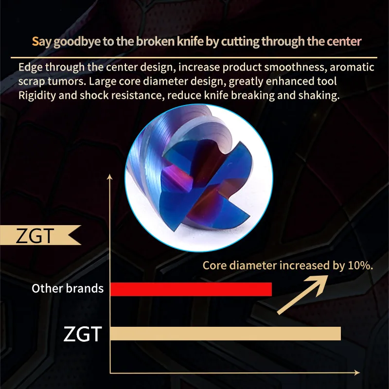 Торцевая фреза ZGT HRC65, 4 канавки 4 мм 5 мм 6 мм 8 мм 10 мм, металлический резак, карбидная фреза из сплава, Вольфрамовая сталь, фреза