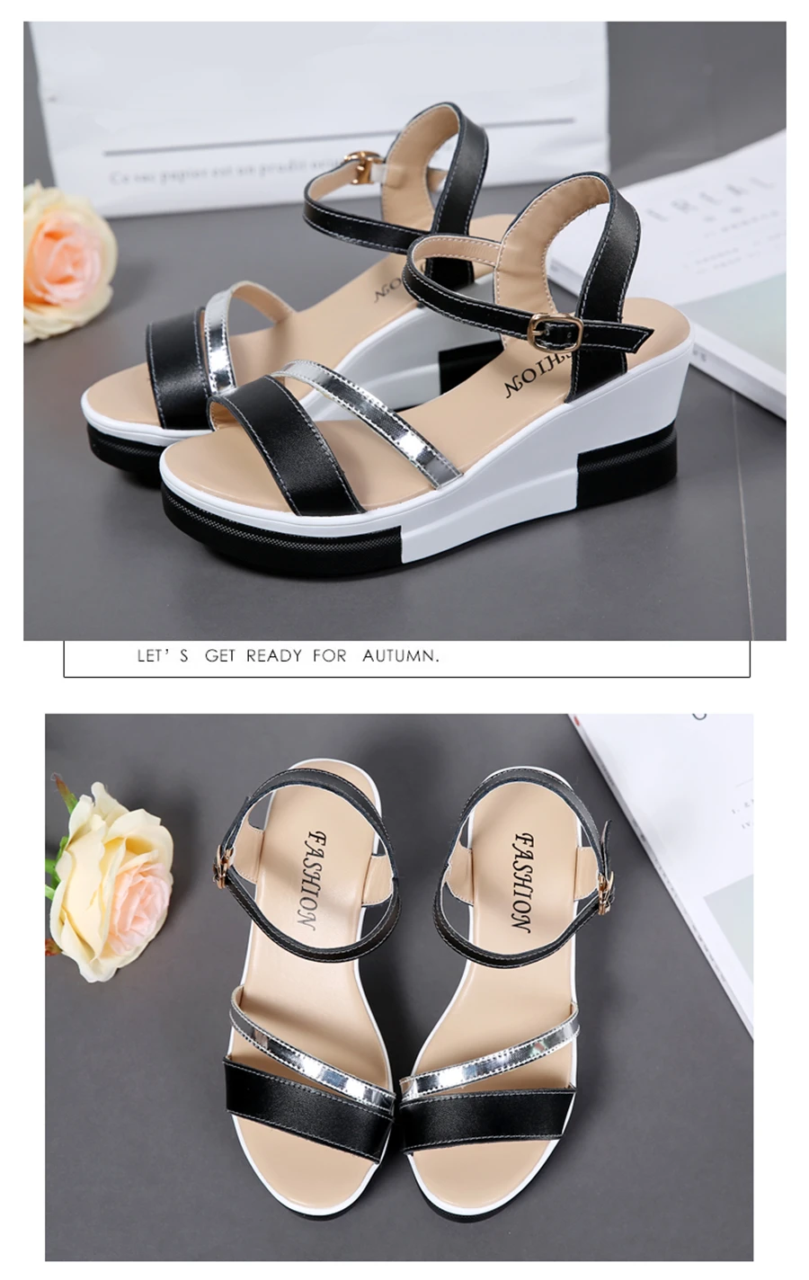 Сандалии женские на платформе, мягкие кожаные босоножки на танкетке...