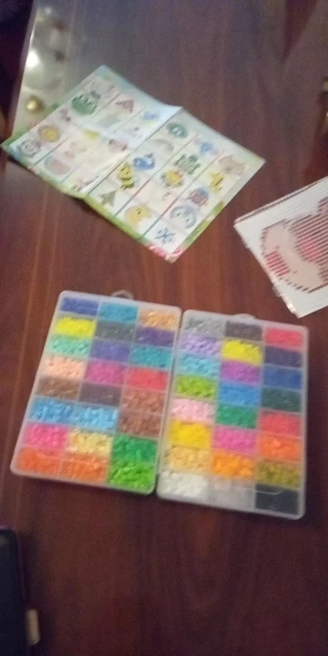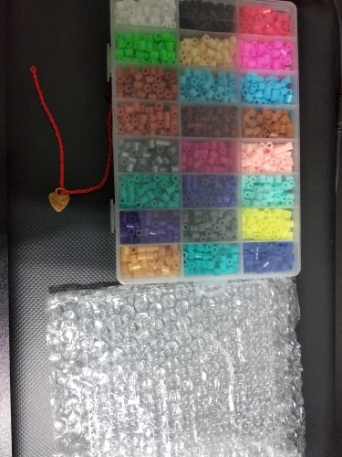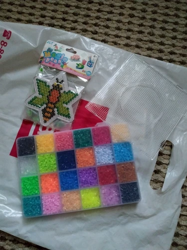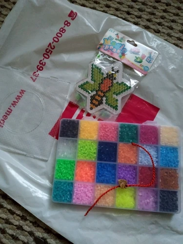 Дождались, довольны! Было упаковано в стрейч пленку и пузырь-пленку, ни одна бусинка не просыпалась. В комплекте квадратная досочка для выкладывания. К сожалению, она не подошла к уже имеющейся у меня: пазы не совпали(( использовать только по-отдельности. Сами бусины яркие, красивые, дети уже несколько дней заняты по утрам, дают мне выспаться в каникулы. В подарок продавец положил браслет из красной нити с фигуркой, спасибо!
