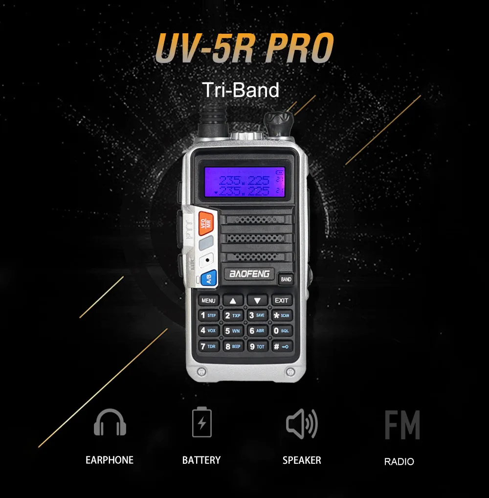 Новый трехдиапазонный BaoFeng UV-5R Pro Walkie Talkie 8 Вт мощное двухстороннее радио 200-260 МГц