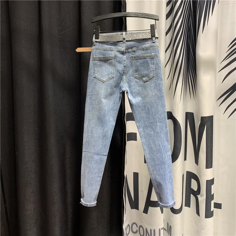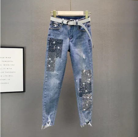 Женские джинсы с завышенной талией, эластичные облегающие джинсы, женские весенние брюки-карандаш с блестками, новинка 2020, джинсы