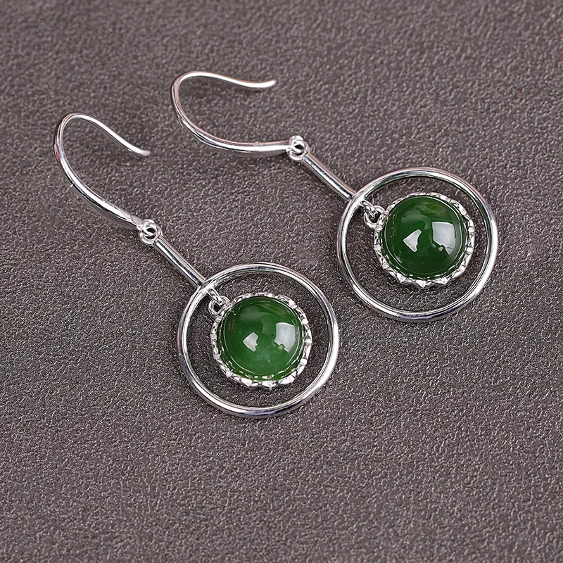 Женские серьги из серебра 100% пробы, с натуральным нефритом