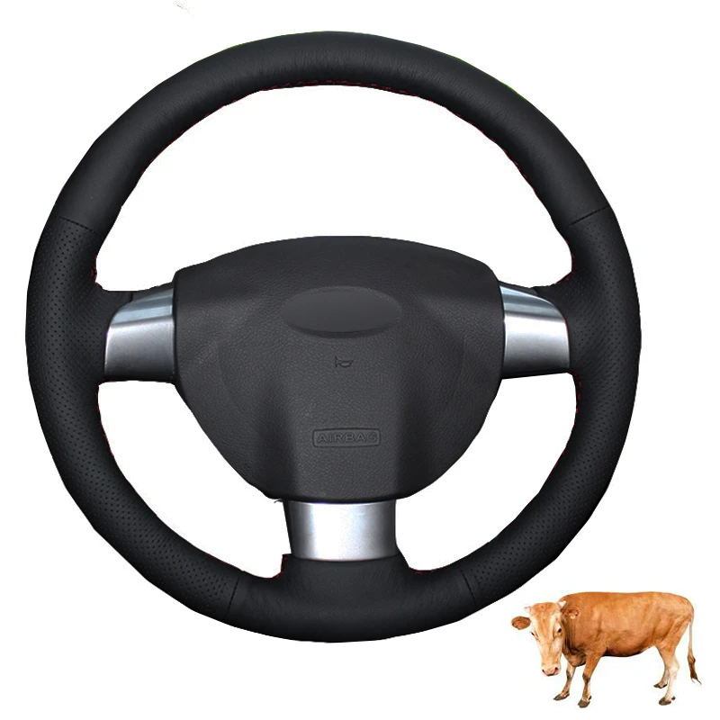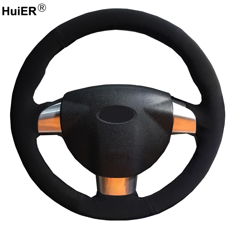Ручной пошив чехол рулевого колеса автомобиля черная замша обернуть коровья кожа для Ford Focus 2 2005 2006 2007 2008 2009 2010 2011 (3 спицы)