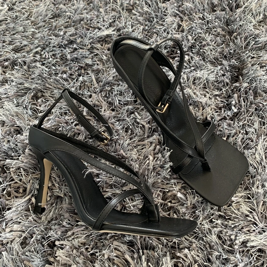 Летние женские босоножки, винтажные босоножки на высоком каблуке с узким ремешком и пряжкой, женские дизайнерские туфли с V-образным вырезом