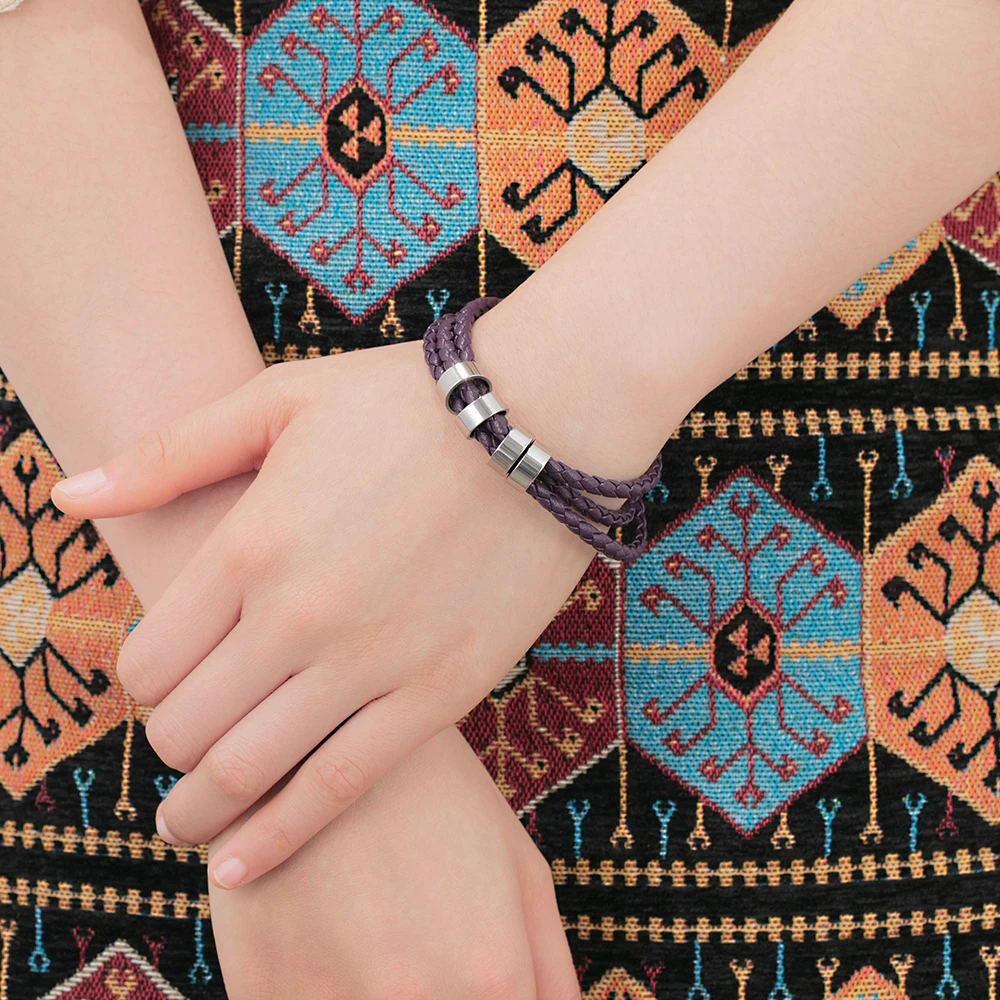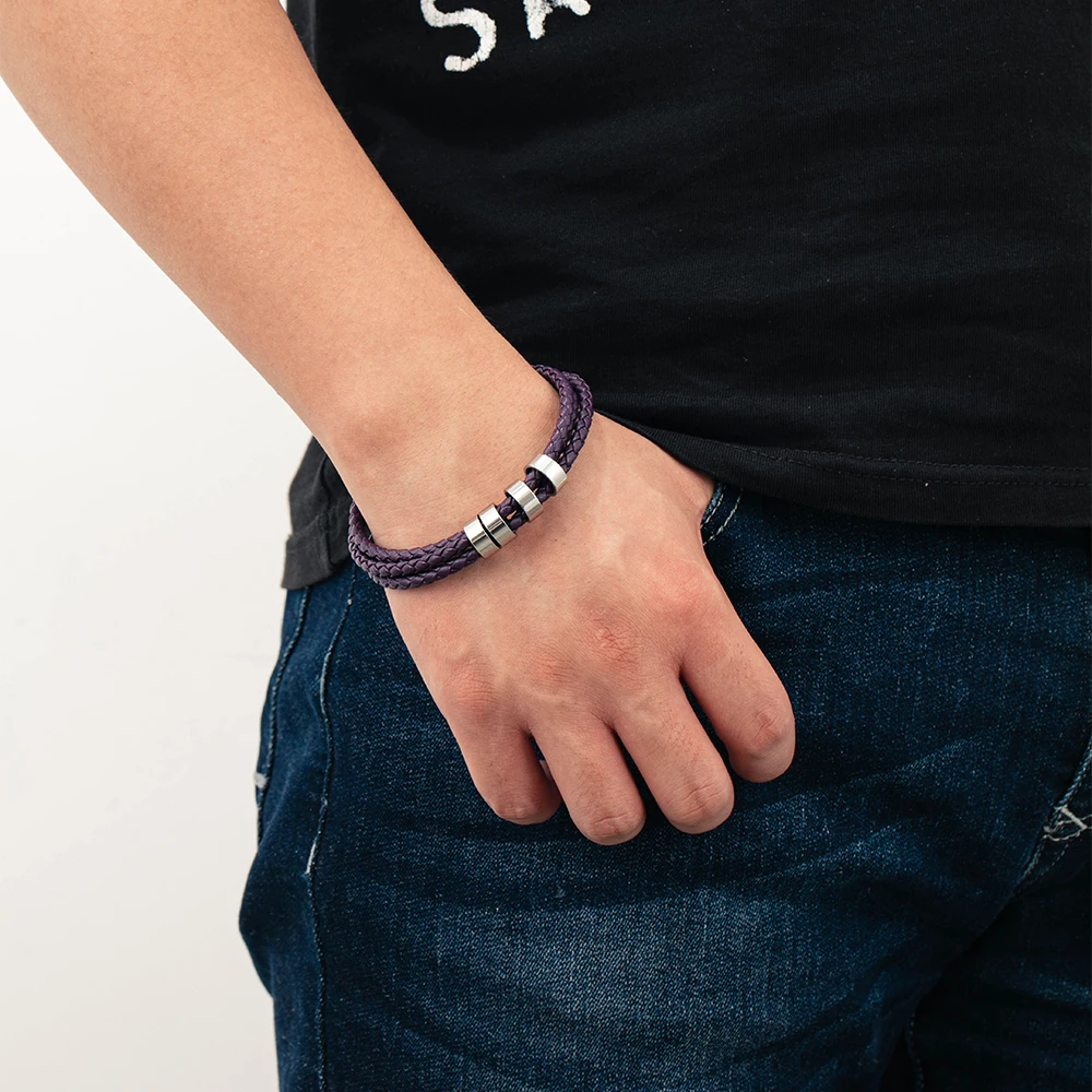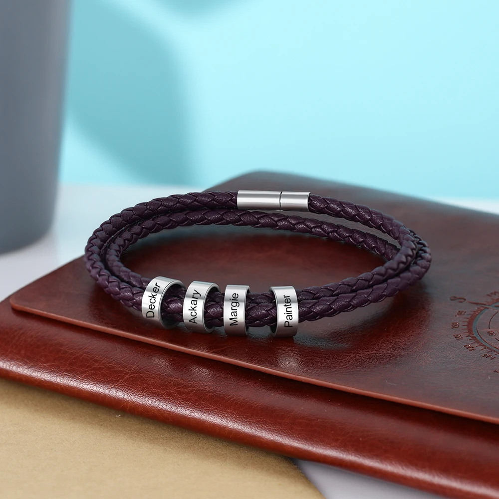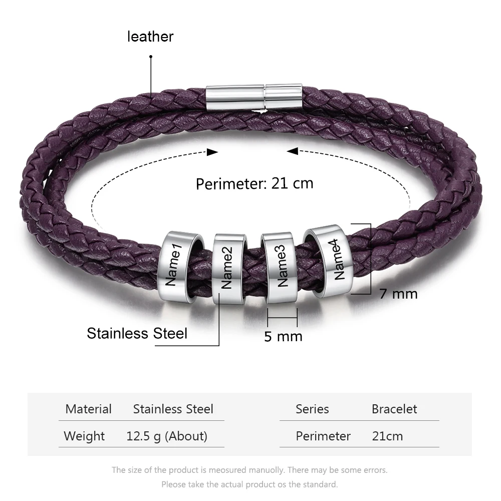 Персонализированный браслет с гравировкой имени и 4 бусинами, индивидуальные разноцветные кожаные браслеты для мужчин и женщин, ювелирные изделия из нержавеющей стали