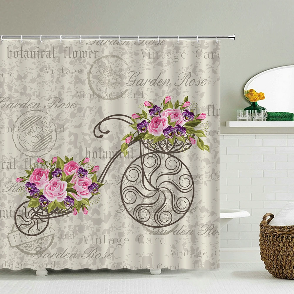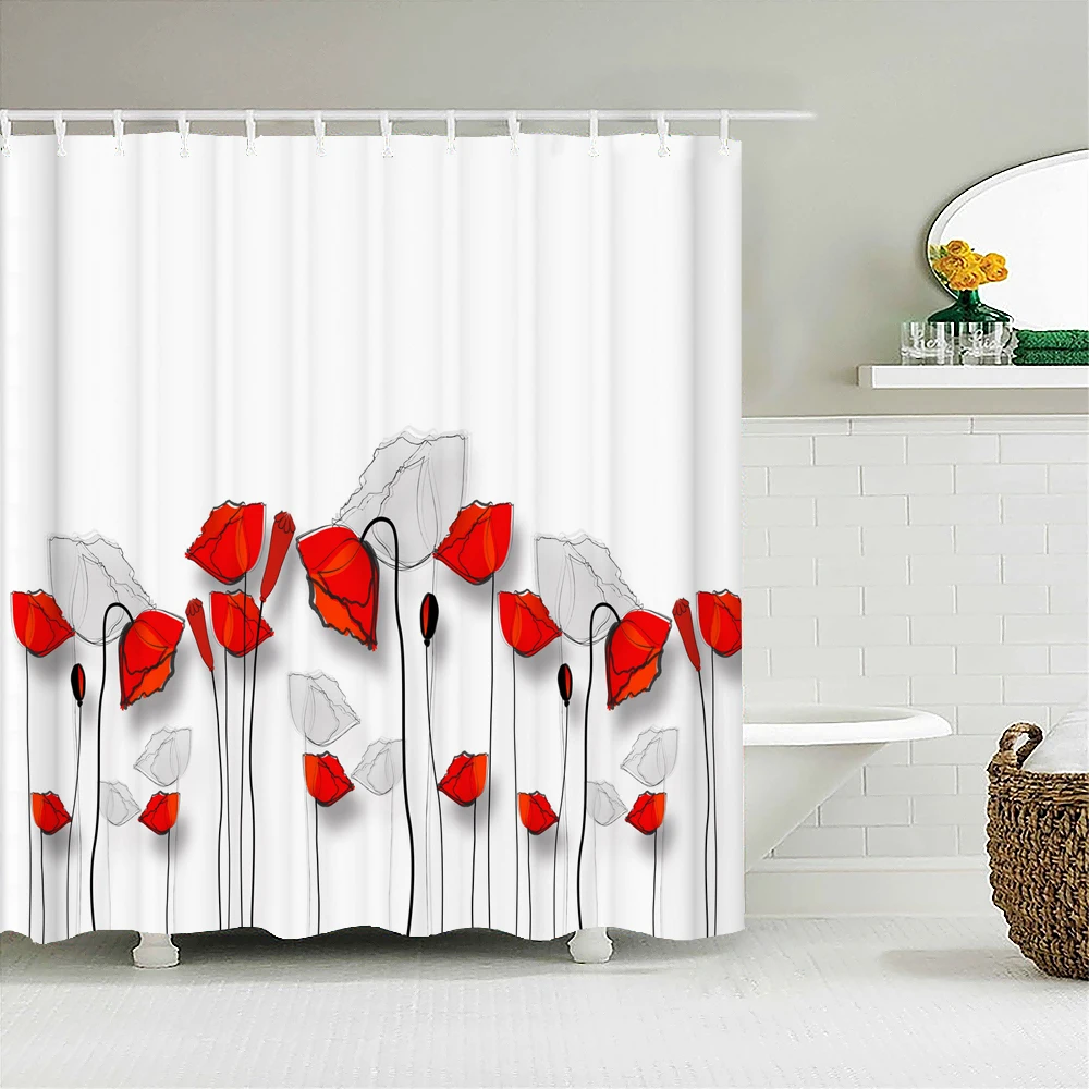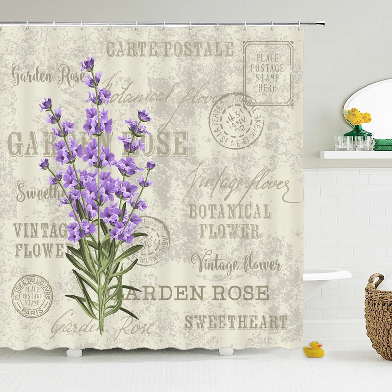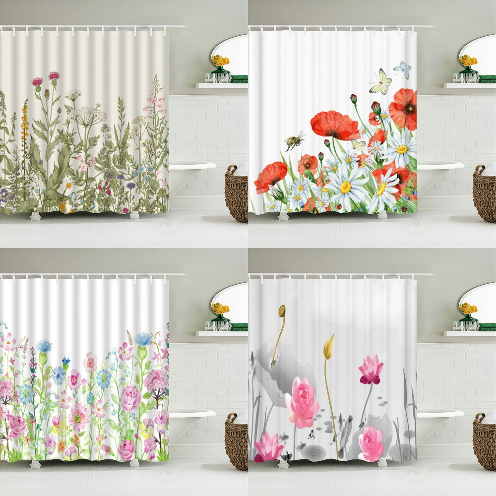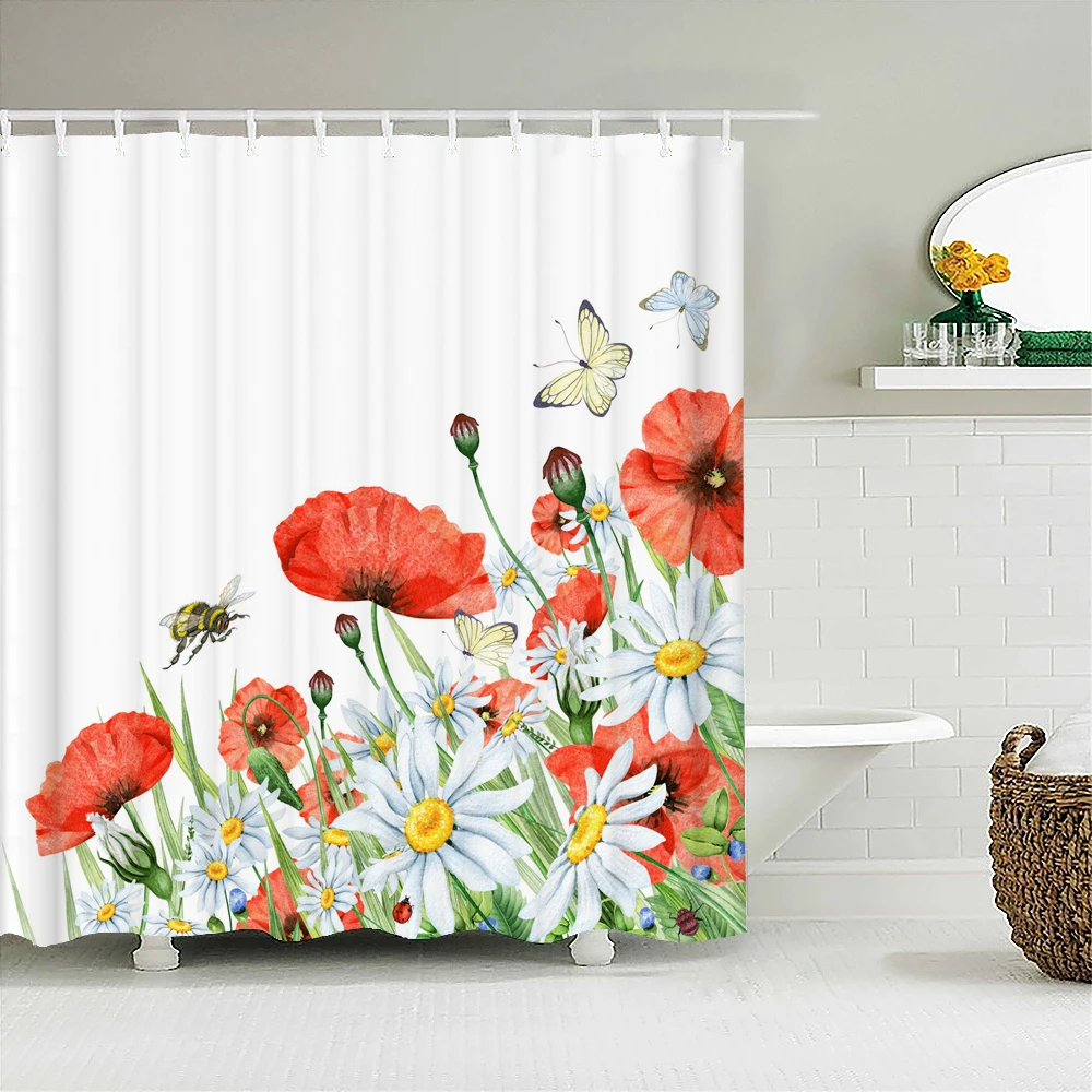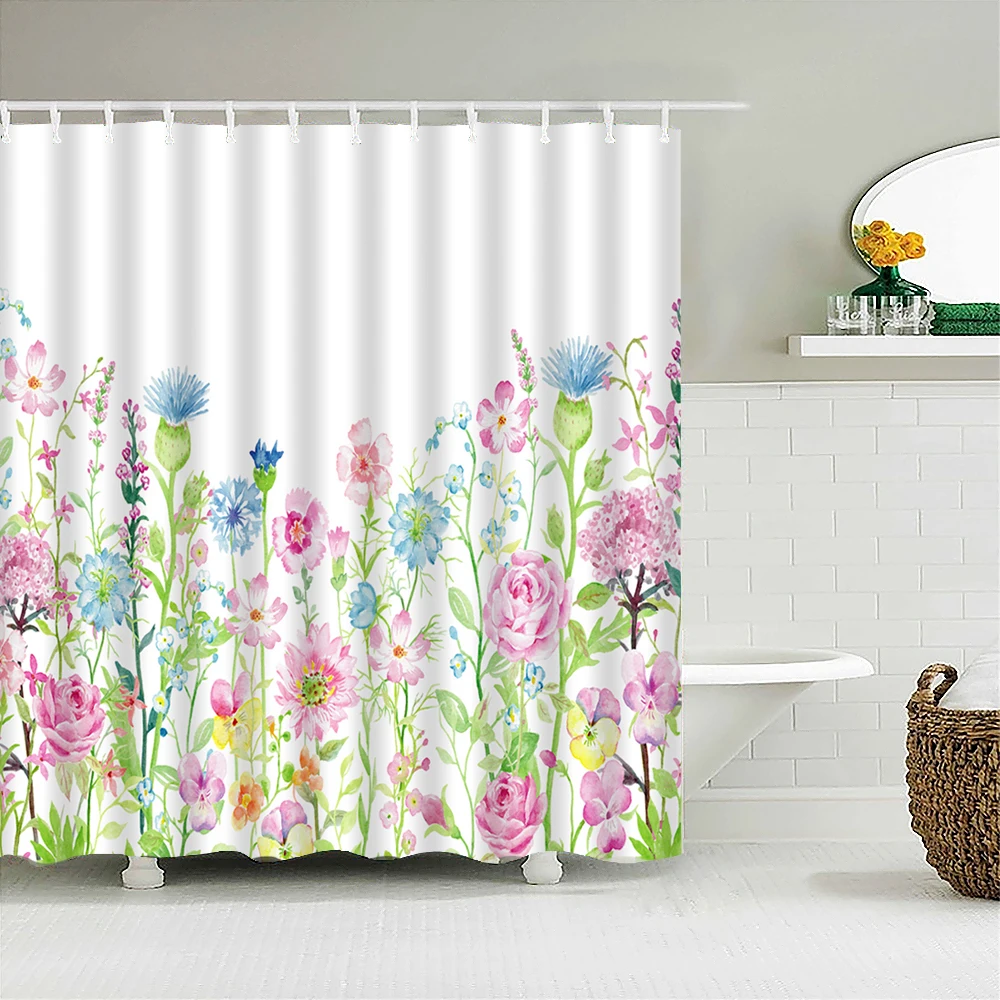 Водонепроницаемая занавеска для ванной из полиэстера, с цветами