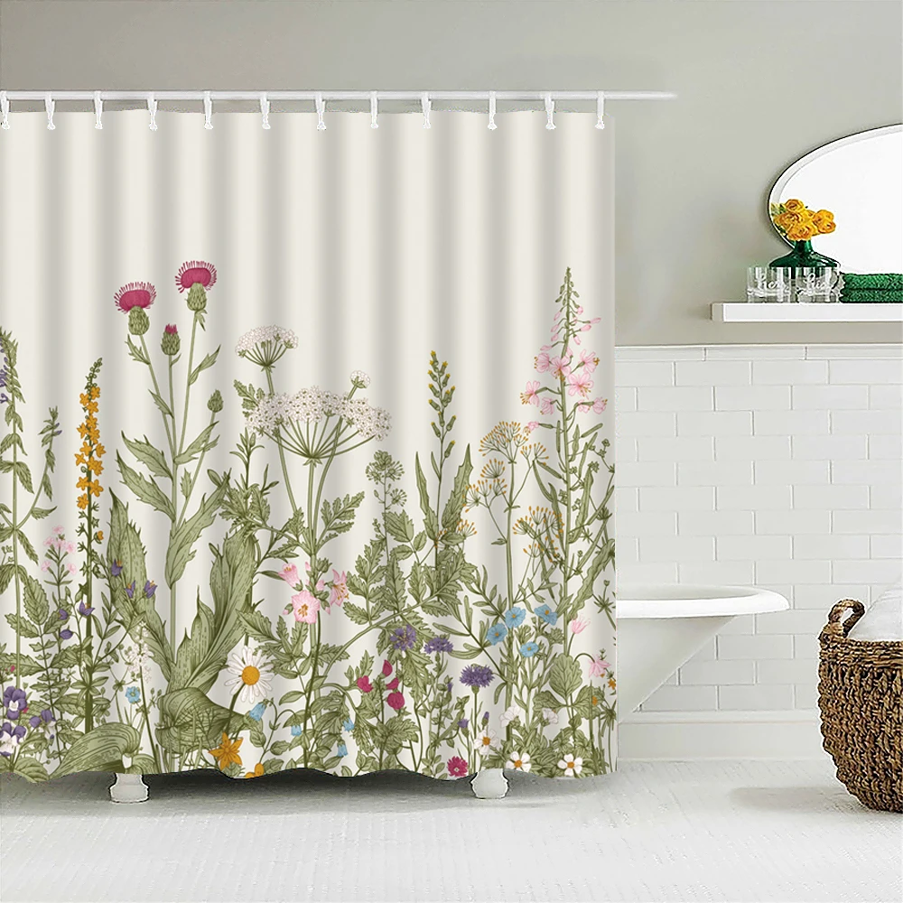Занавеска для душа с изображением цветов и растений, водонепроницае...