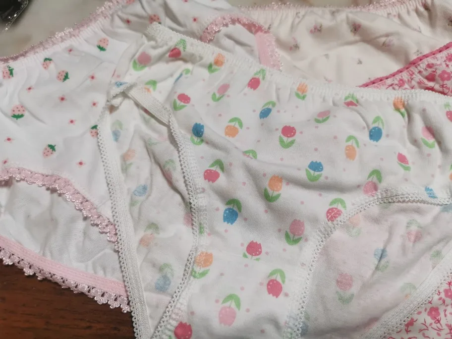 Все с цветочным рисунком. 3 шт. на 3-4 летнего ребенка, 1-на двухлетнего еле еле.
