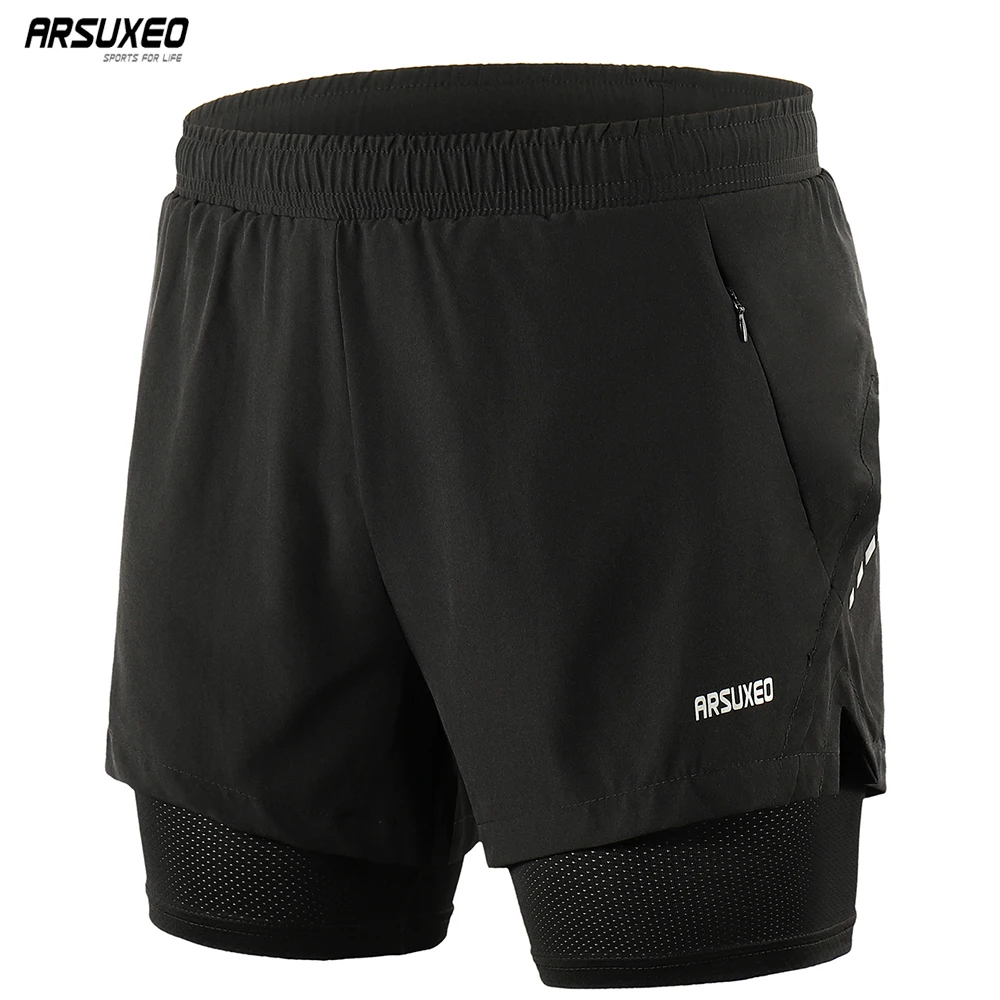 ARSUXEO Спортивная одежда мужские шорты для бега Для мужчин 2 в 1 шорты для спортивного зала, светоотражающие Фитнес шорты Кроссфит брюки спортивная одежда быстросохнущие