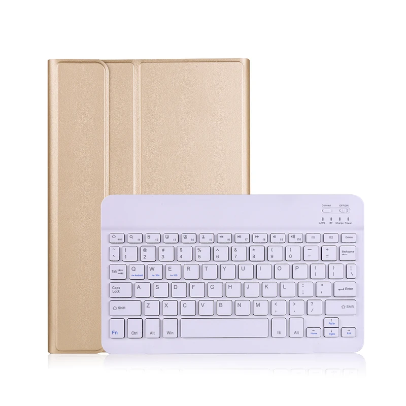 Золотой кожаный чехол + белая клавиатура