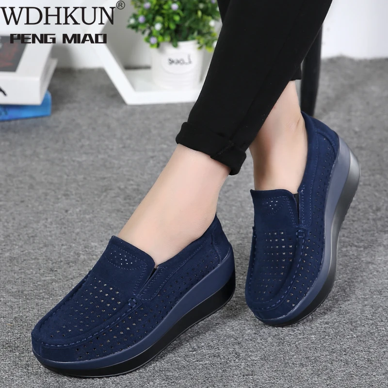 Женские замшевые мокасины на платформе, повседневные туфли на плоск...