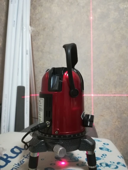 За свои деньги отрабатывает на 120%. Отстреливает горизонт и четыре вертикали с перекрестием на потолке и точкой в пол. Регулировка яркости лучей. Отключение звука есть. Лучи можно включать по одному. Доставка была курьером до двери , с предварительнымсогласованием времени. Рекомендую!