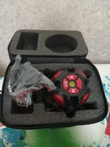 Посылку получил курьером довольно быстро. В коробке мягкий кейс с уровнем. работает отлично, строит 3 плоскости. думал, что можно будет отстраивать под потолок,но нет. но это скорее от того, что не совсем понимал, как он работает. В общем покупкой за такие деньги очень доволен.