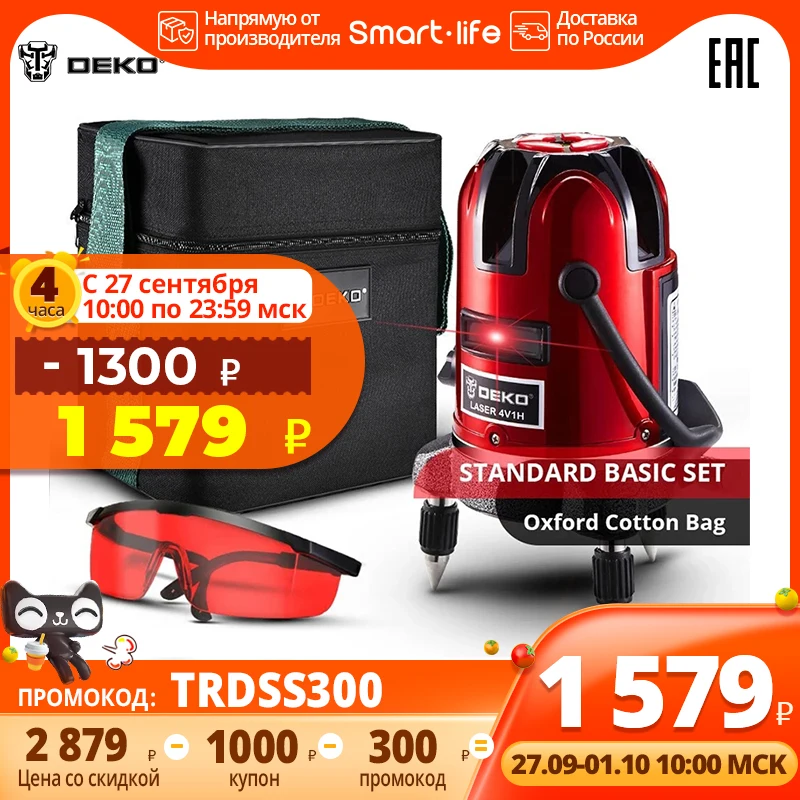 Прибыл за 3 дня и с учётом распродажи 11.11 это просто отлично. Уровень понравился. Купил за 1695,30 с учётом купона. По поводу точности пока ничего не могу сказать. Всё выглядит солидно. Работу проверил пока только от сети, т.к. ещё не купил батарейки. Линии видно хорошо. Комплектация номер 3 - прибор, очки, блок питания и пластиковый кейс. Треногу 1,5 метра получил на 1 день раньше из другого магазина (за 700 с копейками) и она отлично подошла.