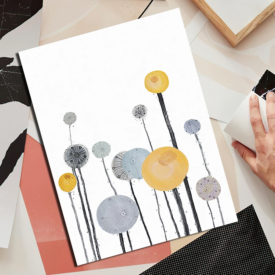 Постер на холсте с изображением акварельных цветов, букетиков, карт...