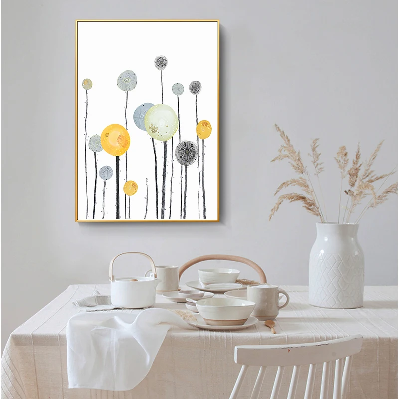 Абстрактная Картина на холсте с изображением сухой травы и цветов