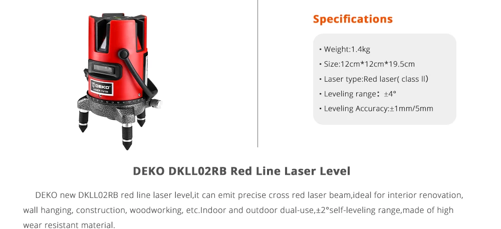 Уровень лазерный в пластиковом кейсе DEKO DKLL02RB + case 065-0276