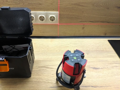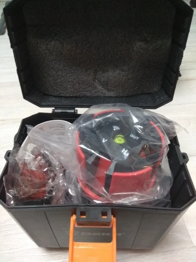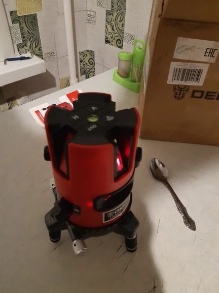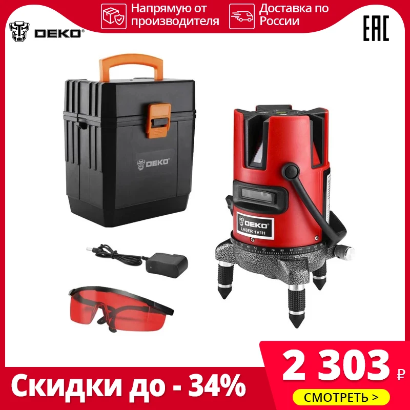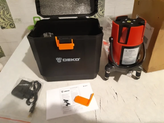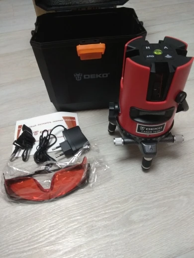 доставка по России за 2 дня в КРД. за свои деньги отличный уровень. У брата профессиональный от bosch, в сравнении с bosch, линии чётче и ярче, даже на больших расстояниях, Deko до bosch далеко. но и разница в стоимости в пять раз. Для домашних дел пойдет. В комплекте батареек нет, работает от трёх АА, но есть блок питания на 4.5в, 1А, т.е можно запитать от повербанки, если смастерить переходник с USB на круглый 2.5 разъем. В комплекте кейс и красные очки, кейс из хлипкого пластика, опять же для дома пойдет. Для профессионального использования даже не рассматривайте - долго не проживет.