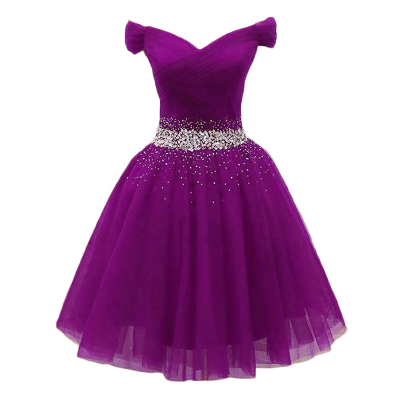 Элегантное бальное платье с бисером и открытыми плечами, короткое красное Формальное вечернее платье, ТРАПЕЦИЕВИДНОЕ Тюлевое платье для выпускного вечера