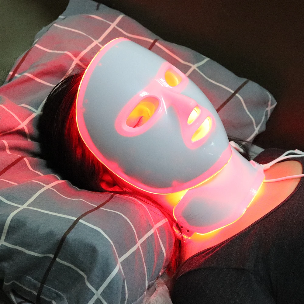 Перезаряжаемая 7 цветов Светодиодная маска для лица с фотонной терапией для шеи уход за кожей омоложение против морщин отбеливание спа