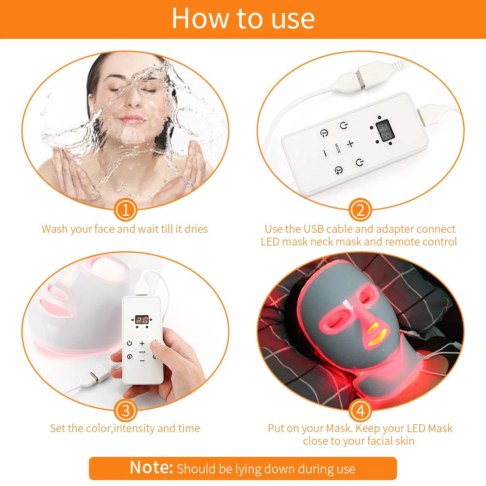 1. Должен лежать во время использования.2. Эффект будет лучше, если использовать с высококачественным увлажняющим средством для ухода за кожей.3. Материал маски из медицинского силикона, который будет иметь некоторый запах после открытия посылка, но запах исчезнет очень скоро.