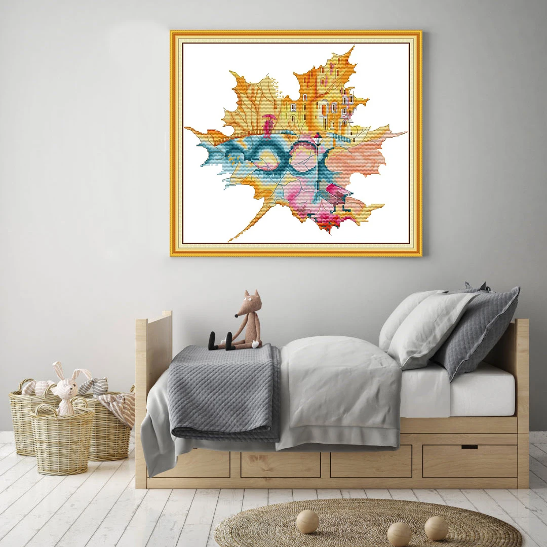 Город в кленовый лист вышивка крестиком узоры напечатаны на холсте 14ct 11ct рукоделие DMC DIY Вышивка крестом комплект с вышивкой ремесла
