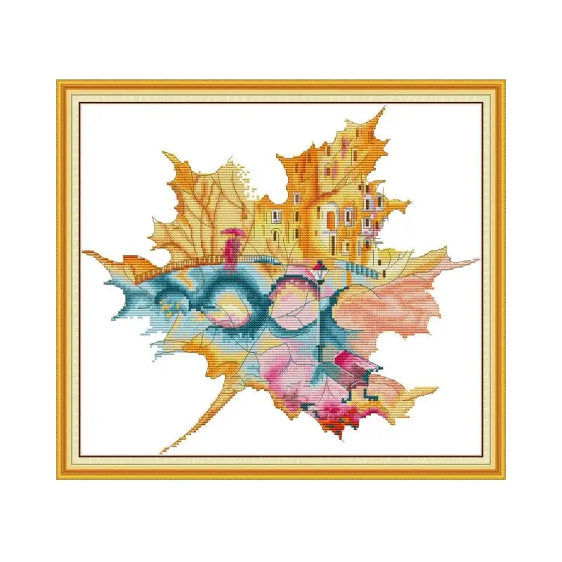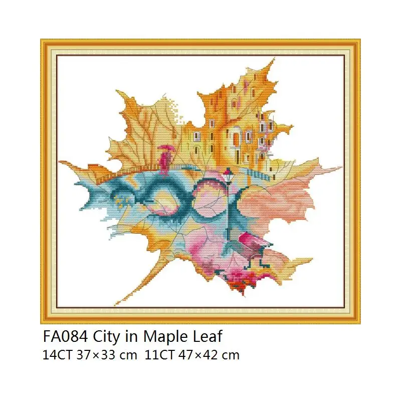 Вышивка крестиком город в кленовом листе, рисунок на холсте 14ct 11ct, рукоделие DMC сделай сам