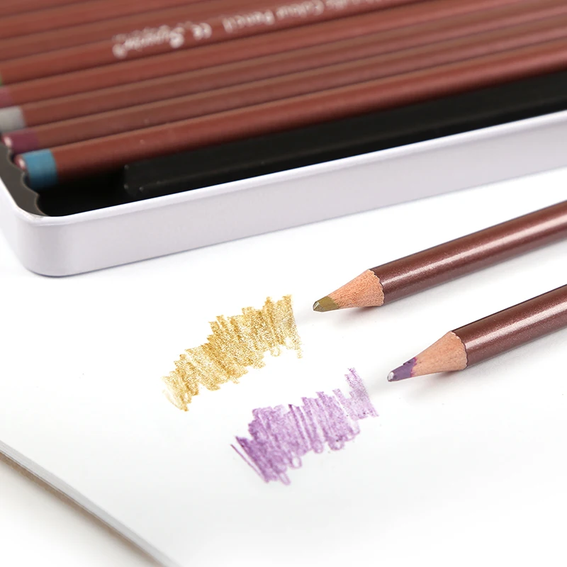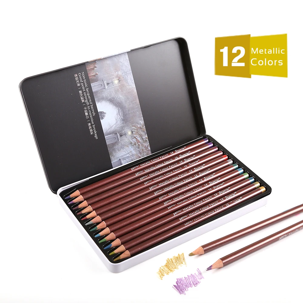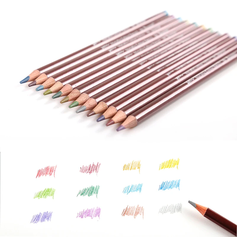 Превосходный металлический цветной карандаш 12 цветов, нетоксичный деревянный цветной карандаш, набор для профессионального рисования художника, искусство