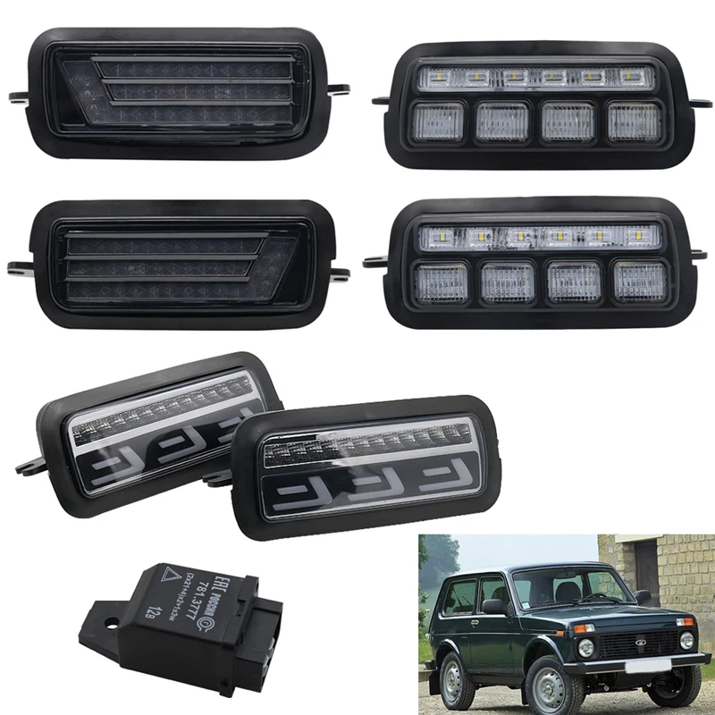 Светодиодные дневные ходовые огни, 2 шт., для Лада Урбан, нива, 4x4, 1995, ходовой сигнал поворота, боковые габаритные огни, тюнинг, лампа с ДХО