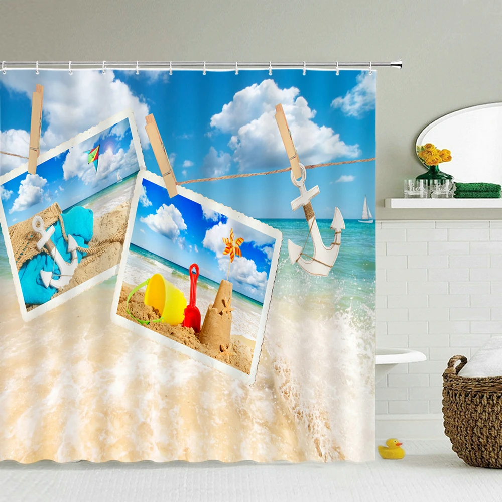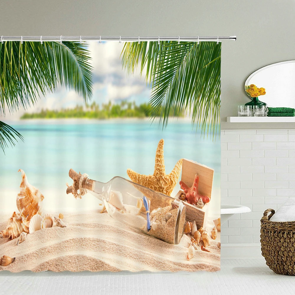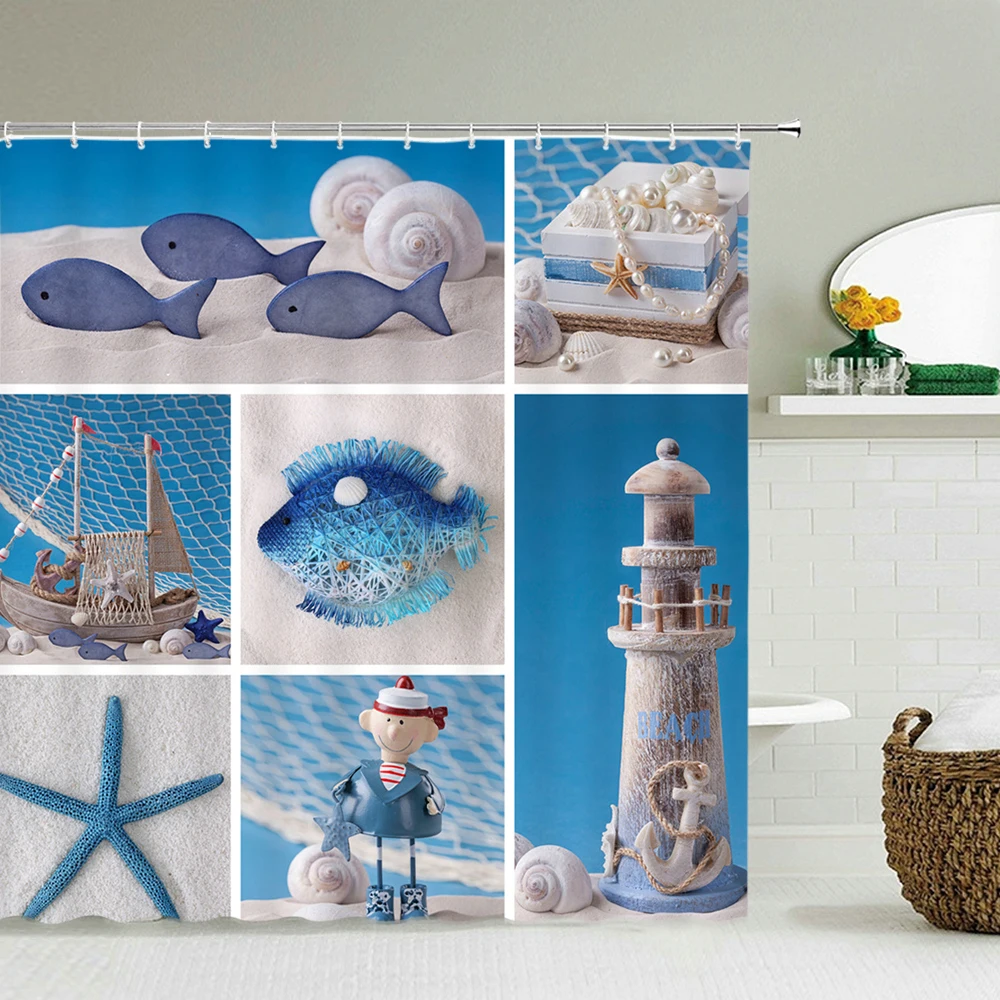 3D принт, высокое качество, морская пляжная оболочка, занавески для душа, экран для ванной, водонепроницаемые товары, декор для ванной комнаты с крючками