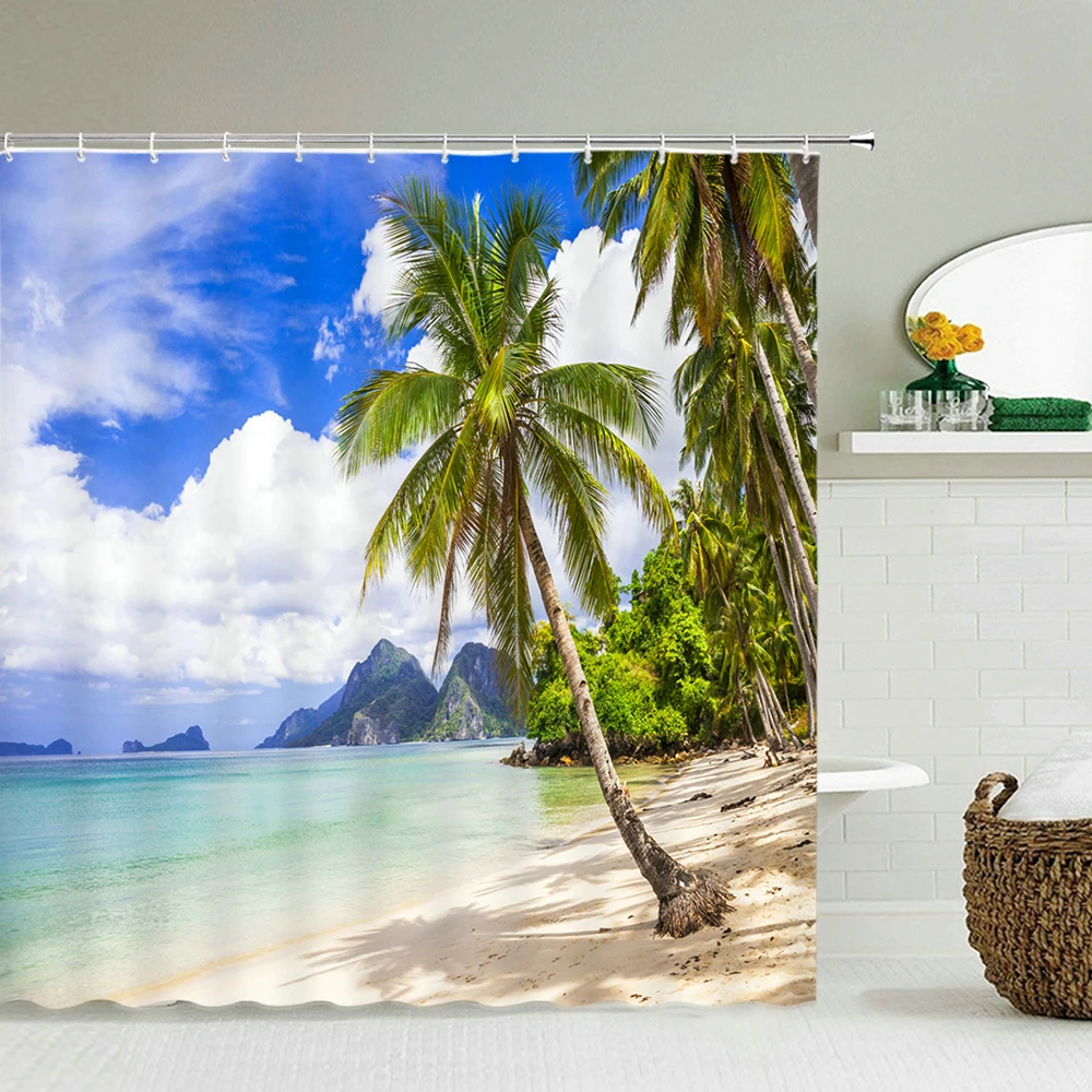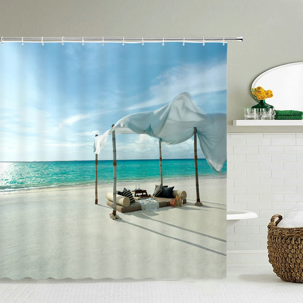 3d-занавеска для душа с пляжным пейзажем, морская, средиземноморская, Женская водонепроницаемая тканевая декоративная занавеска для ванной 180*240 см