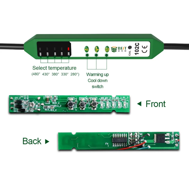 6. Температура постоянная и может быть скорректирована, ее функция аналогична паяльной станции, но стоимость гораздо ниже