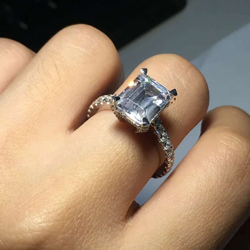 Женская обувь для подружки невесты 3 Ct 925 Серебряное кольцо Классические свадебные украшения кубический циркон кольца для девочек