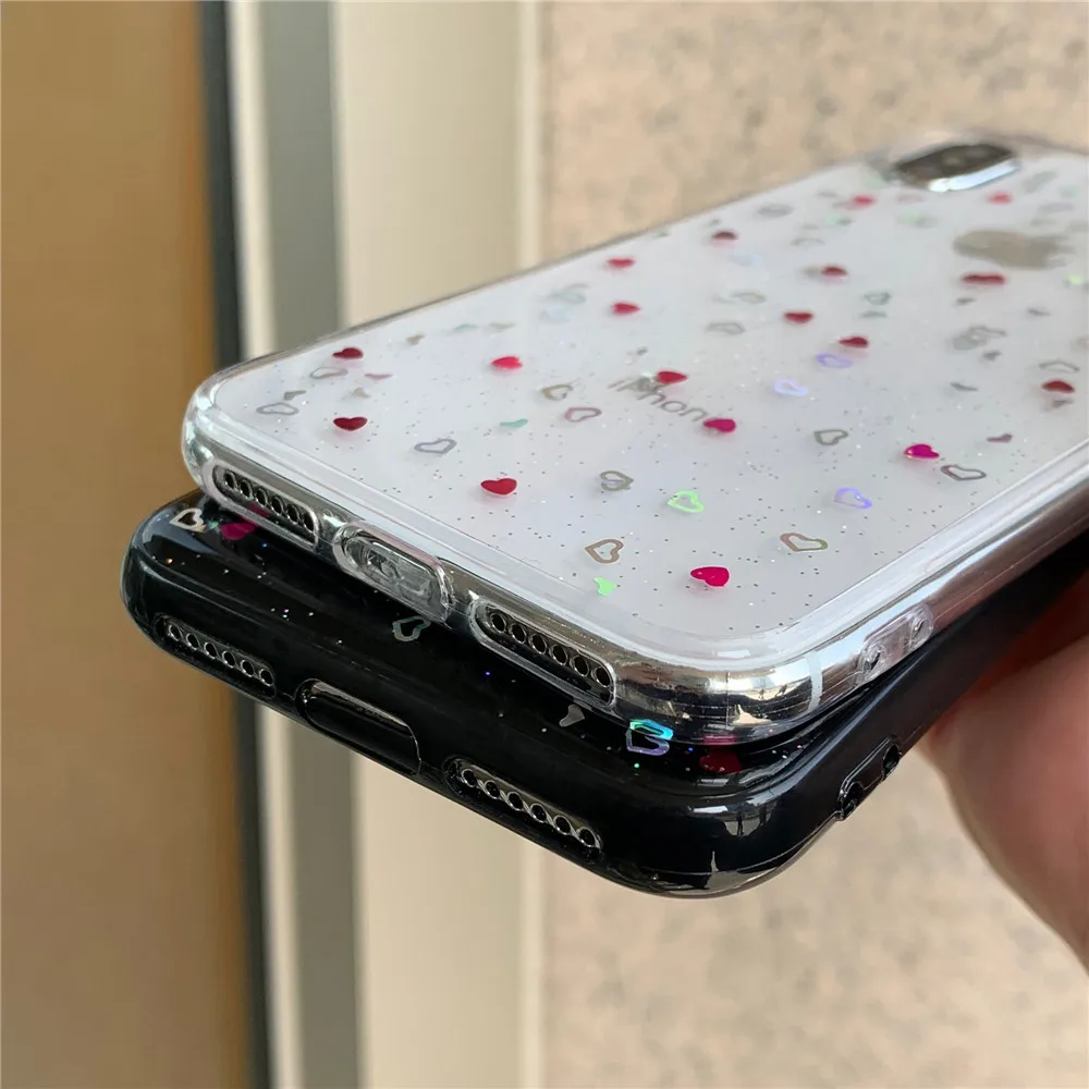 Прозрачный Тонкий силиконовый чехол с блестками в форме сердца для ...