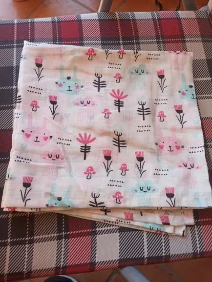 Быстрая доставка, трек отслеживался. Муслин двухслойный. Пеленка мягкая, приятнее на ощупь, чем ситец. Но она какая-то чересчур гладкая, с небольшим блеском, поэтому пеленка у другого продавца понравилась больше, она оказалась более мягкой. Края прошиты хорошо. Размер 121 на 108 см