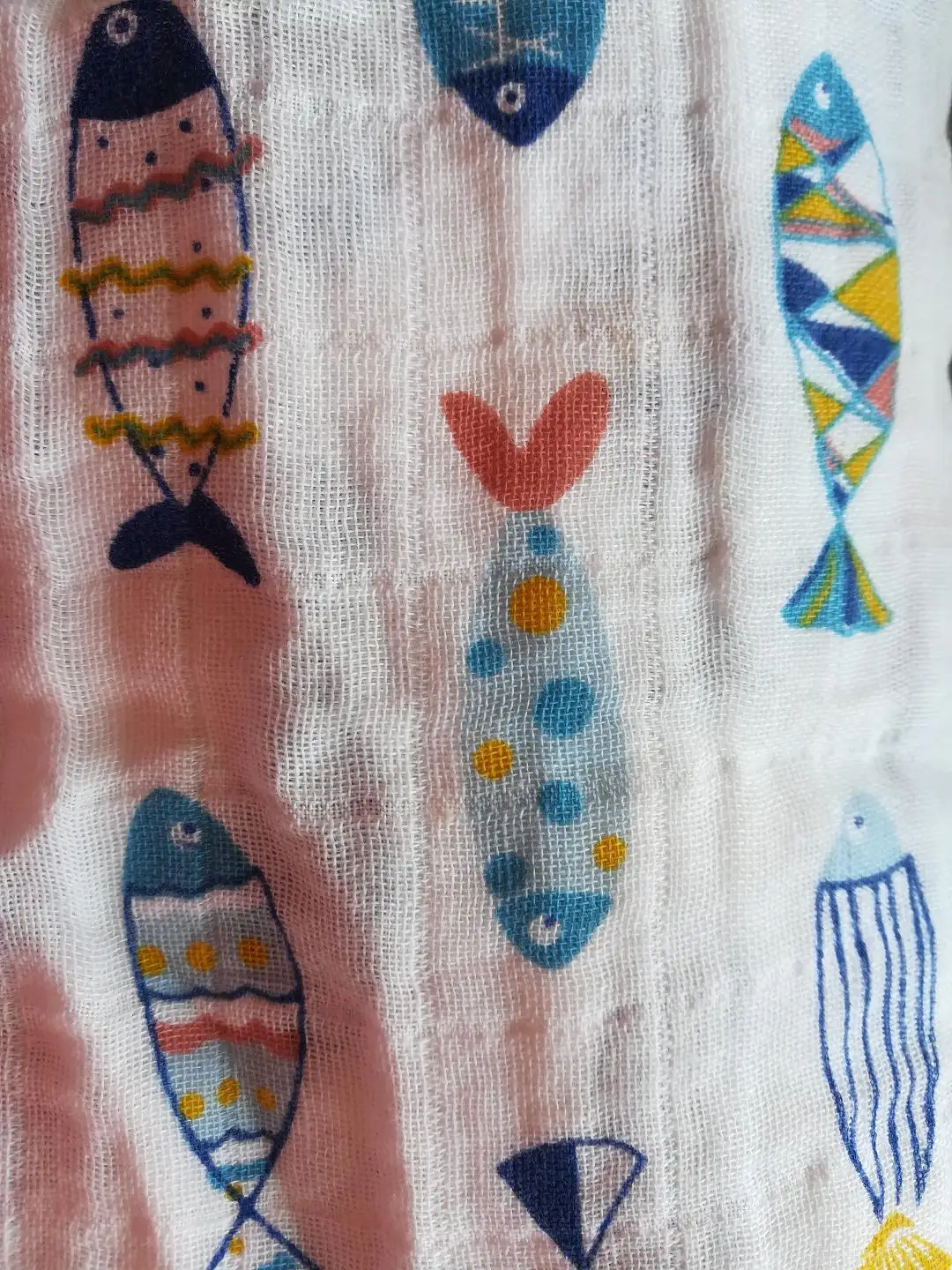 Muy linda la muselina, es verdad que he comprado con otros proveedores y cambia un poco la textura pero el estampado es tal cual viene en la foto. Muy vivos los colores y excelente para varios usos.