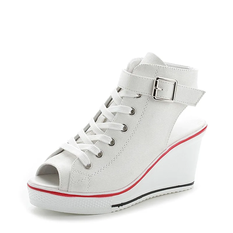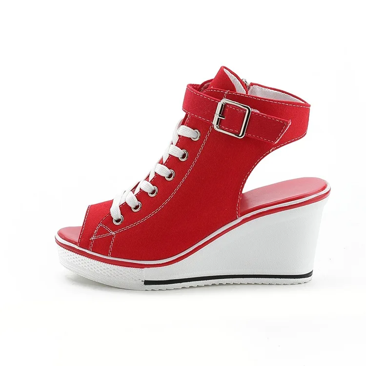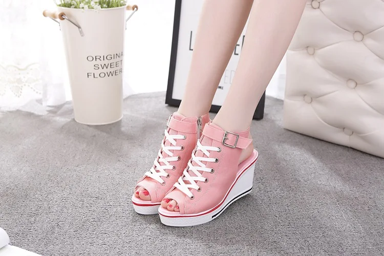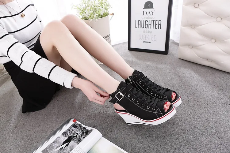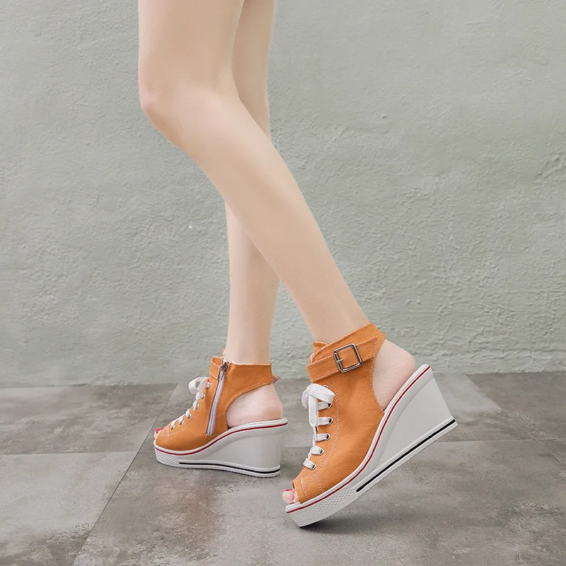 Новинка весна-лето 2020, высокие холщовые туфли, женские холщовые сандалии с открытым носком, открытые туфли на высоком каблуке, большие размеры