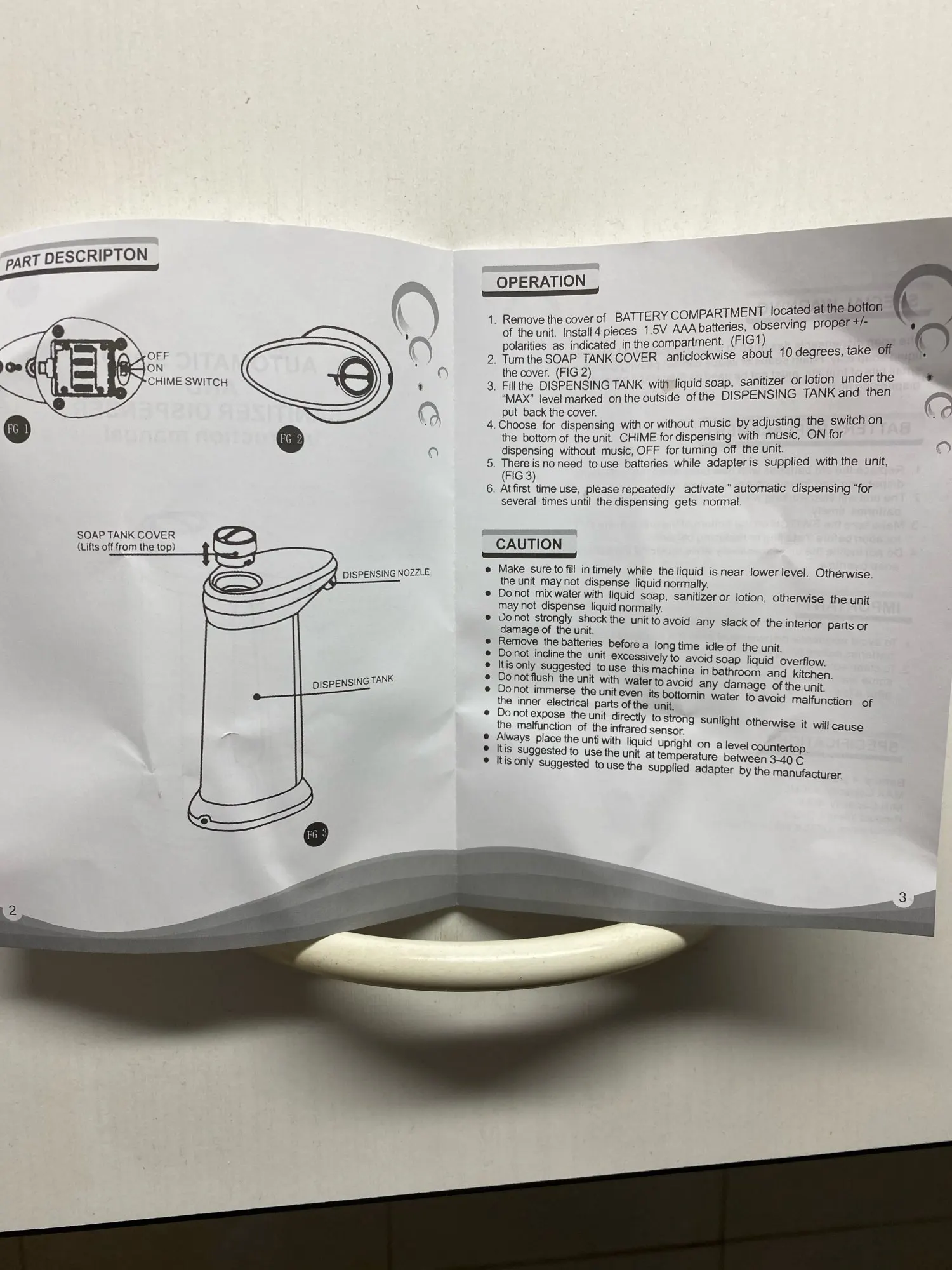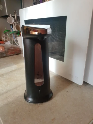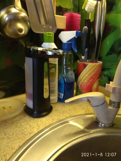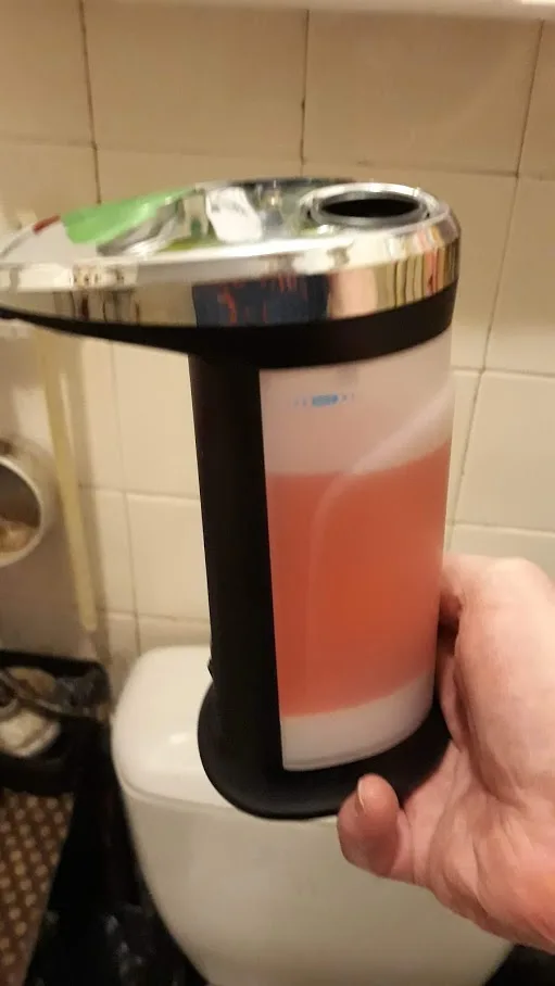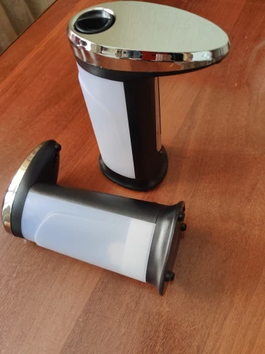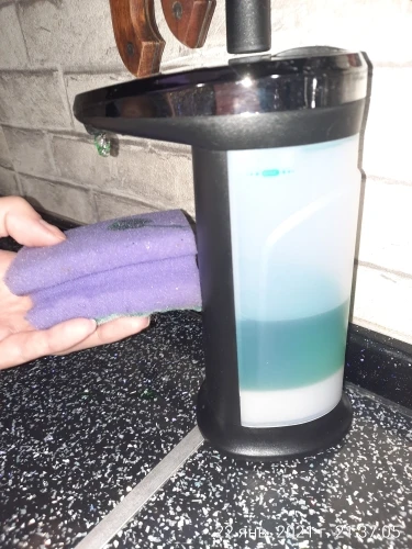 Диспенсер работает. Необходимы 4 батарейки ААА. Я затупил, сперва залил жидкость, а потом начал вставлять батарейки. Неудобно из-за боязни пролить жидкость. Уплотнительных колец на горлышке нет. У диспенсера 2 режима. На первом режиме он льёт пока рука в зоне действия датчика. А на счёт второго режима я нихера не понял. Так же льёт, но при убирании руки издаёт противный звук. В общем херли расписывать. Работает. Занял своё место на кухне. Единственное, я думал, что он будет вспенивать мыло, а не просто лить. Нихера.