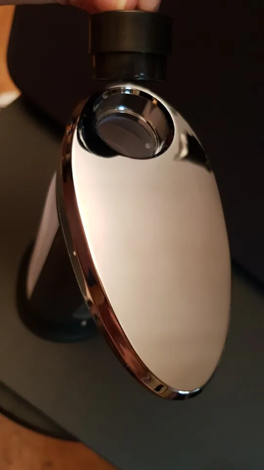2 недели уже работает - всё нормально! Верхняя часть блестящая и все капли оставляют пятна. Задняя часть прозрачная матовая. Батарейки (нет в комплекте) держат хорошо, за 2 недели не разу не менял (3/4 флакона выработал). Вещь хорошая. Буду брать ещё 1 для ферри на кухню. Доставка около 3 недель до Омска.
