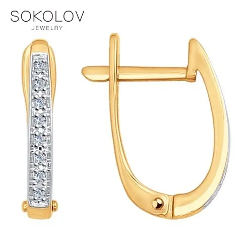 Классические золотые серьги с бриллиантами SOKOLOV Diamonds, Золото, 585, Женские, Серьги 2022 тренд, Оригинальная продукция