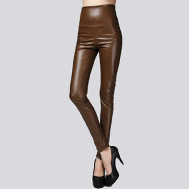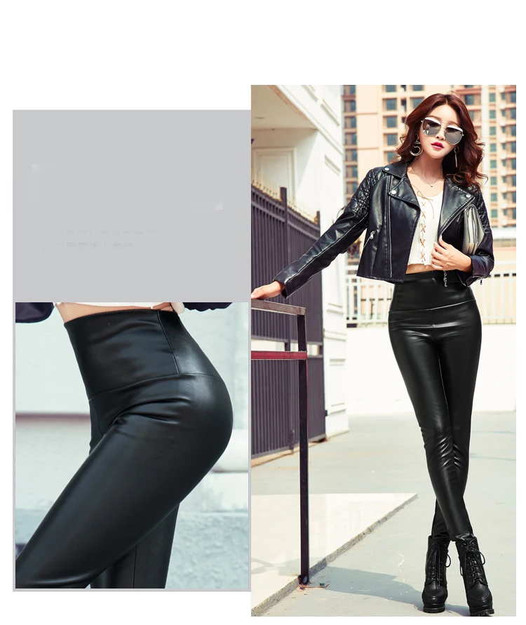 Женские леггинсы из ПУ кожи, с высокой талией, теплые мягкие брюки ...