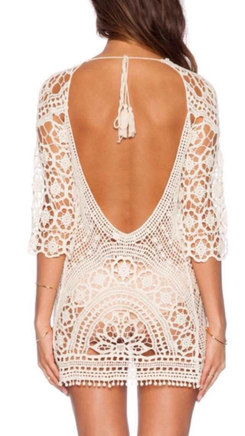 Женское кружевное однотонное пляжное платье, накидка на бикини, лет...