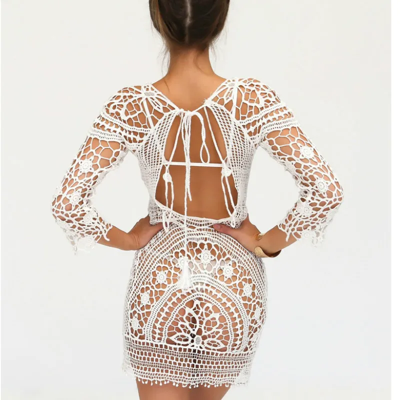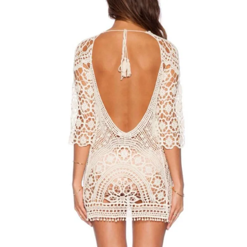 Женская Кружевная туника, белый купальный костюм с открытой спиной,...