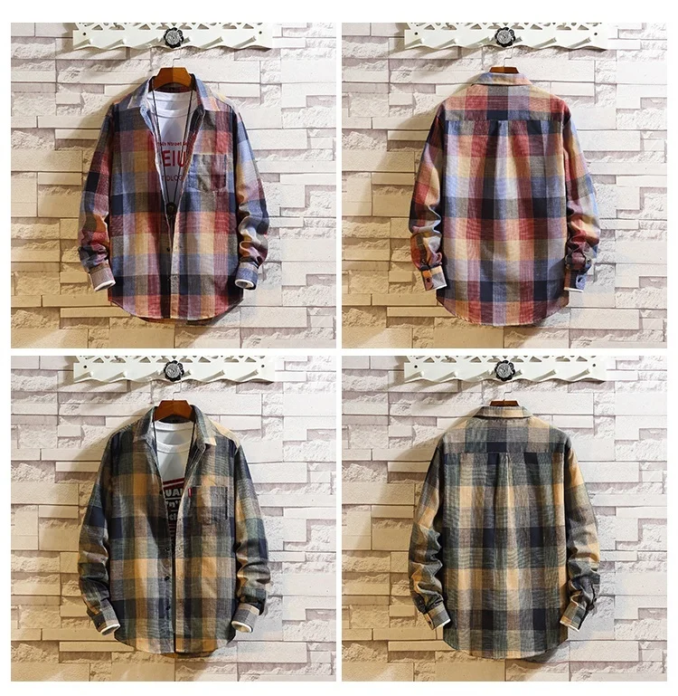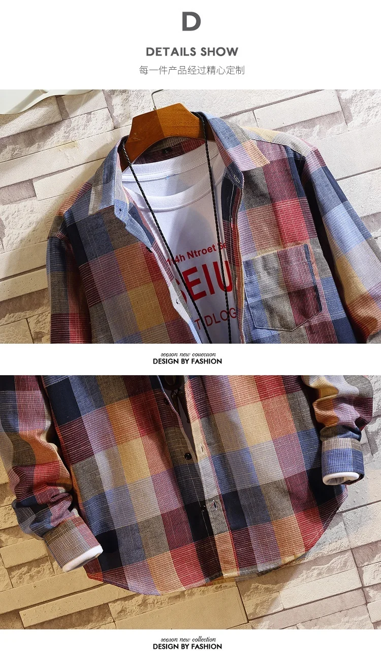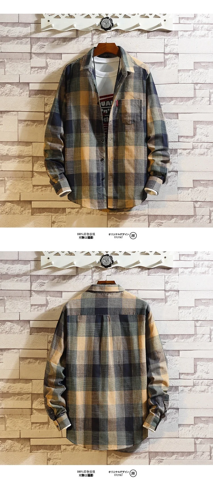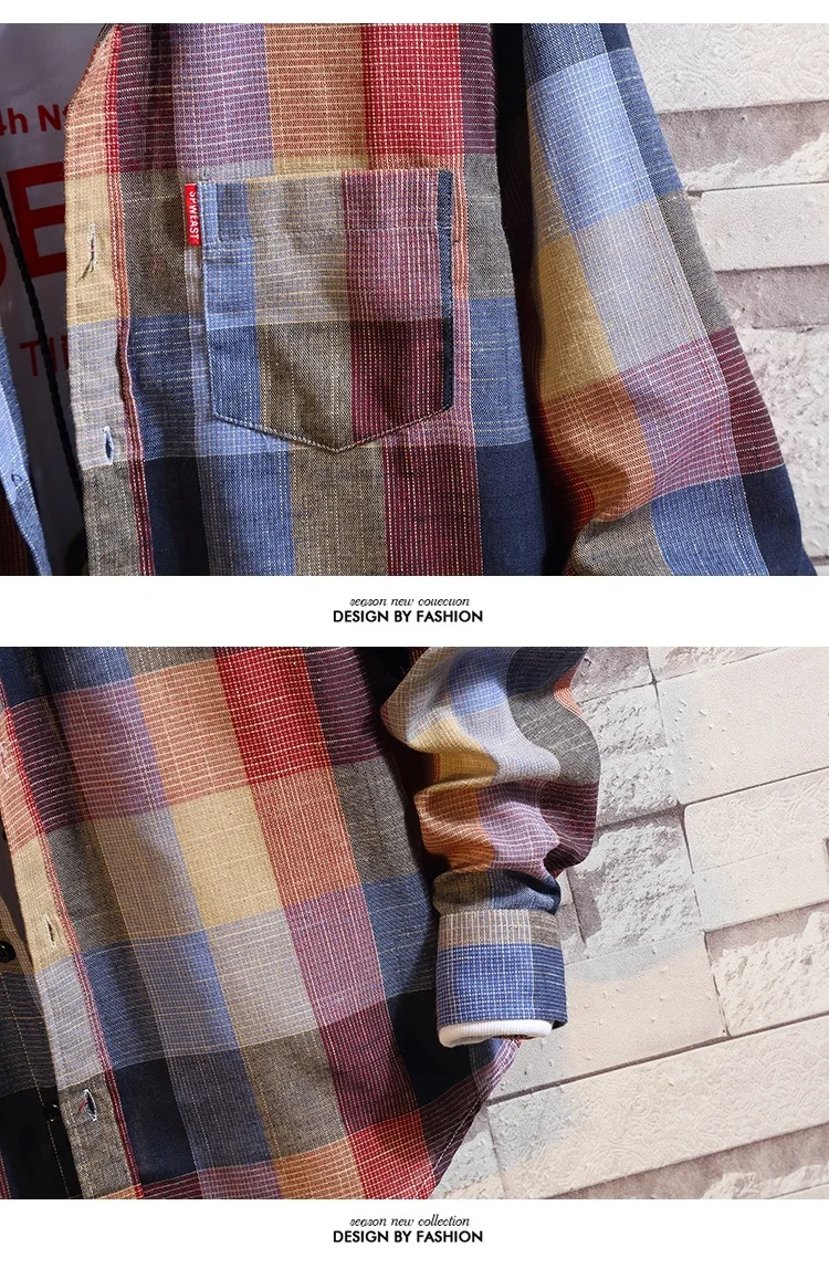 Рубашка RUIHUO мужская в клетку, Повседневная блуза из хлопка, приталенный силуэт, с длинным рукавом, с отложным воротником, весна 2022